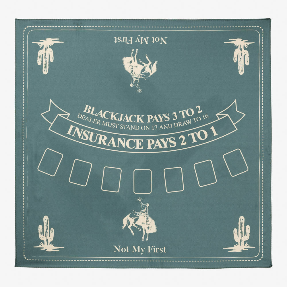 Look amazing and gamble the night away. Premium scarfs that also functions as a Blackjack table. Satin fabric, size: 65cm. x 65.cm. Made in Europe by some really, really amazing people. Comes with a "Get out of jail Free" Card.